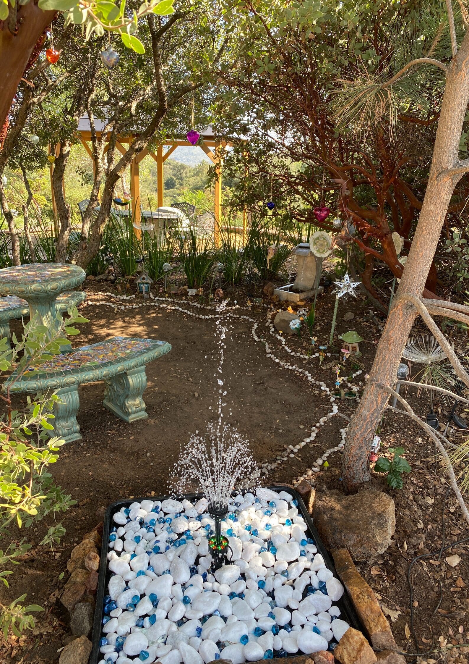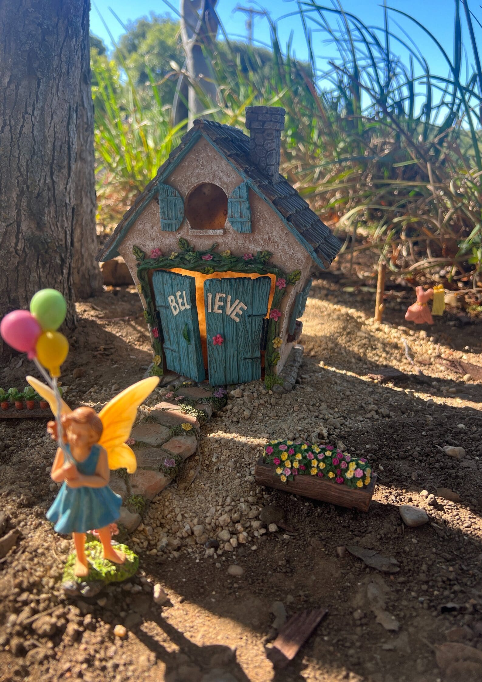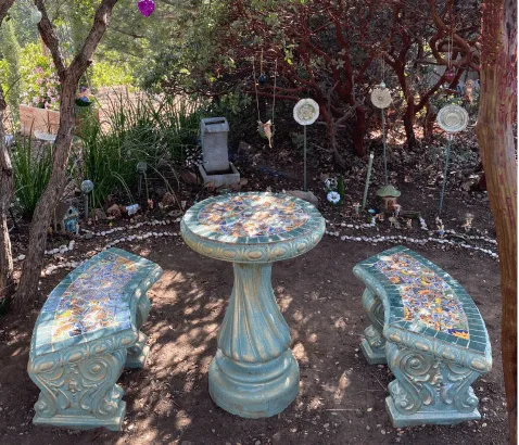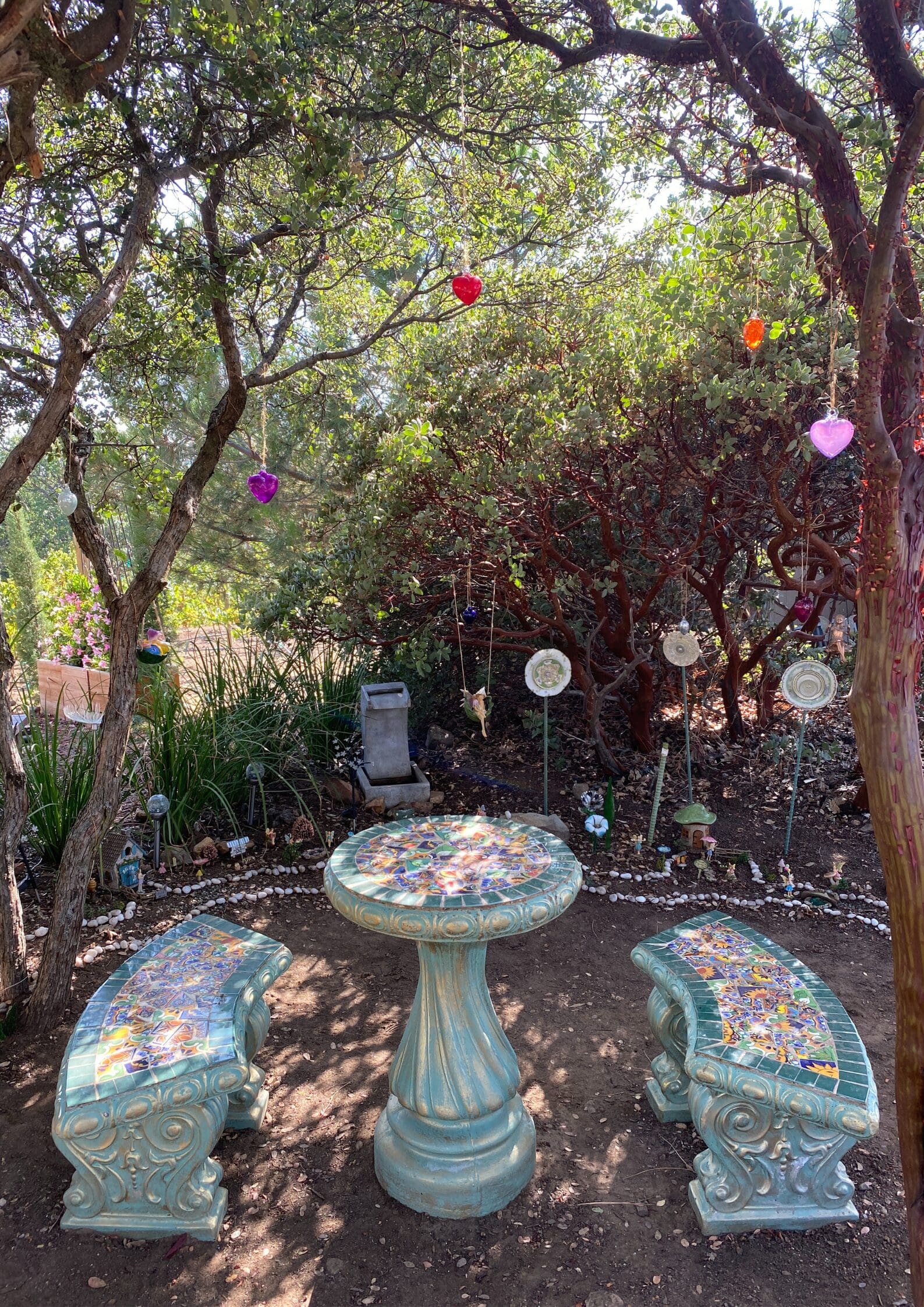 Step into our enchanting Fairy Garden—an oasis where cares fade away, and magic fills the air. Amidst hanging glass hearts and whimsical fairies nestled in trees and along pathways, discover a place to reconnect with the wonder of childhood.