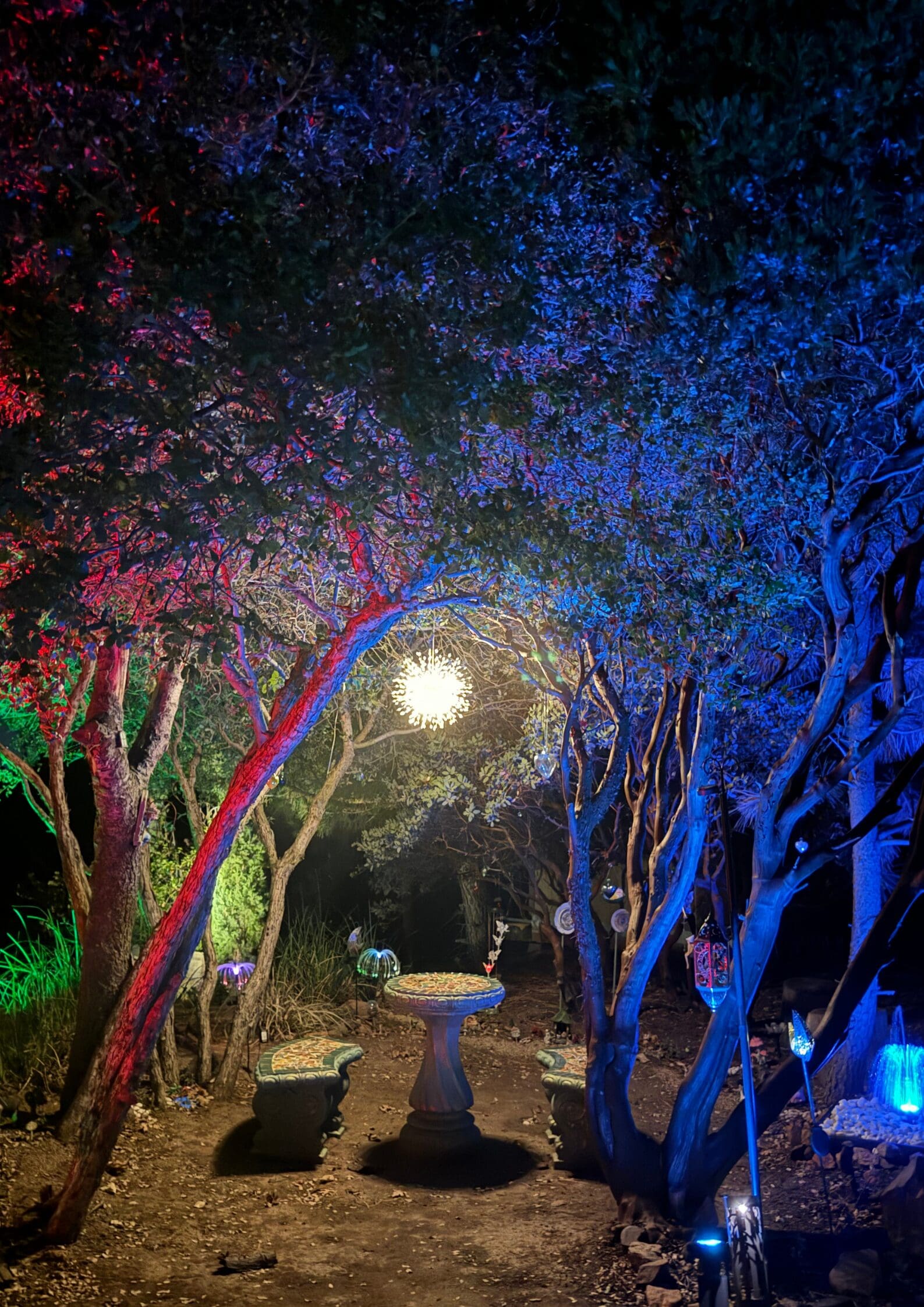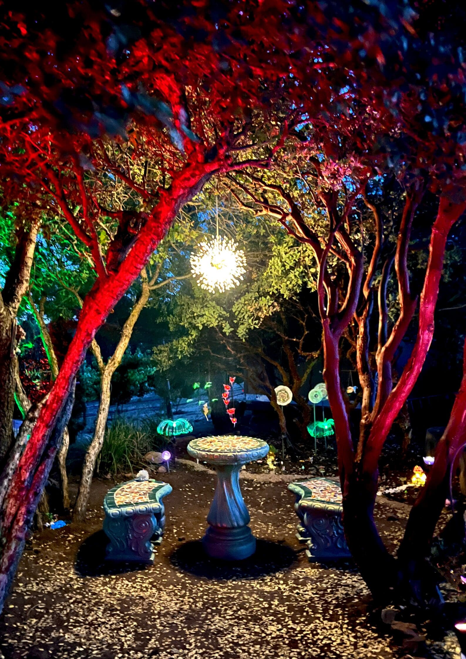 Relax at our magical table and chairs, where every moment sparkles with nostalgia, and the promise of dreams come true. (At night, it’s one of the most magical places imaginable!)