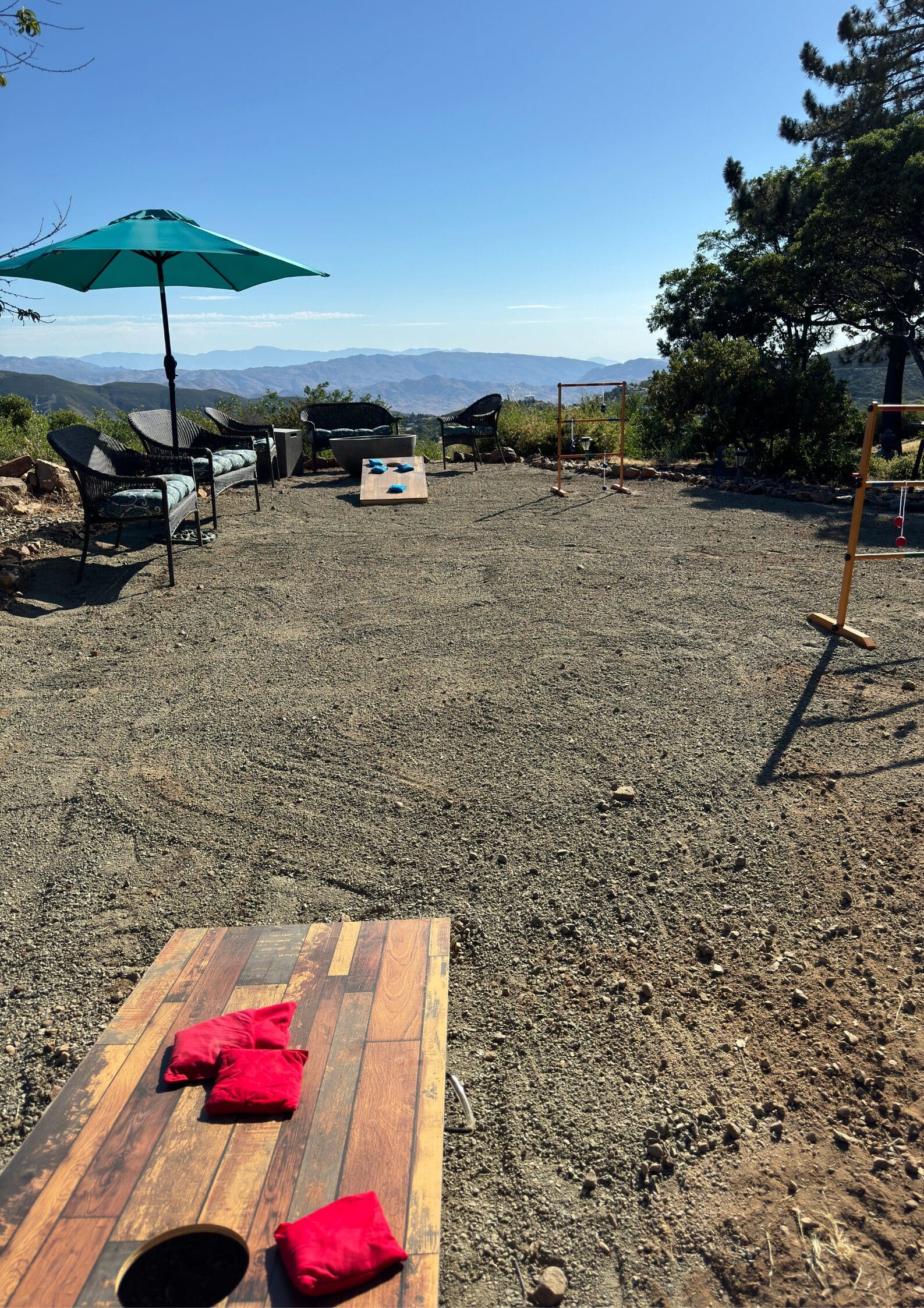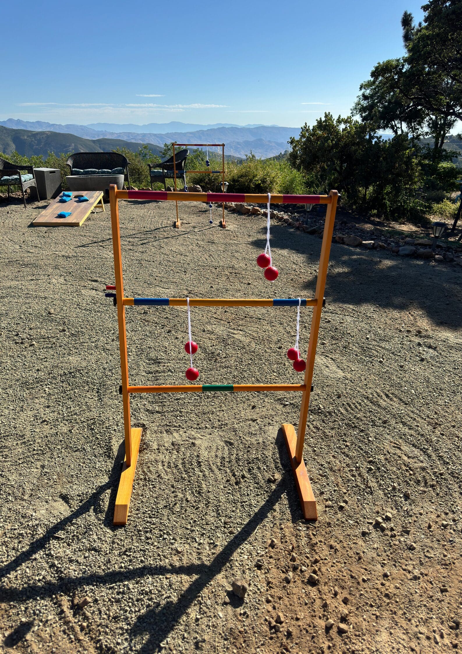 Our dedicated game area—located just across from the vineyard—offers space to unwind. Cornhole and Ladder Toss can be played together or solo, giving you the freedom to compete, laugh, or simply move your body and let your mind rest.