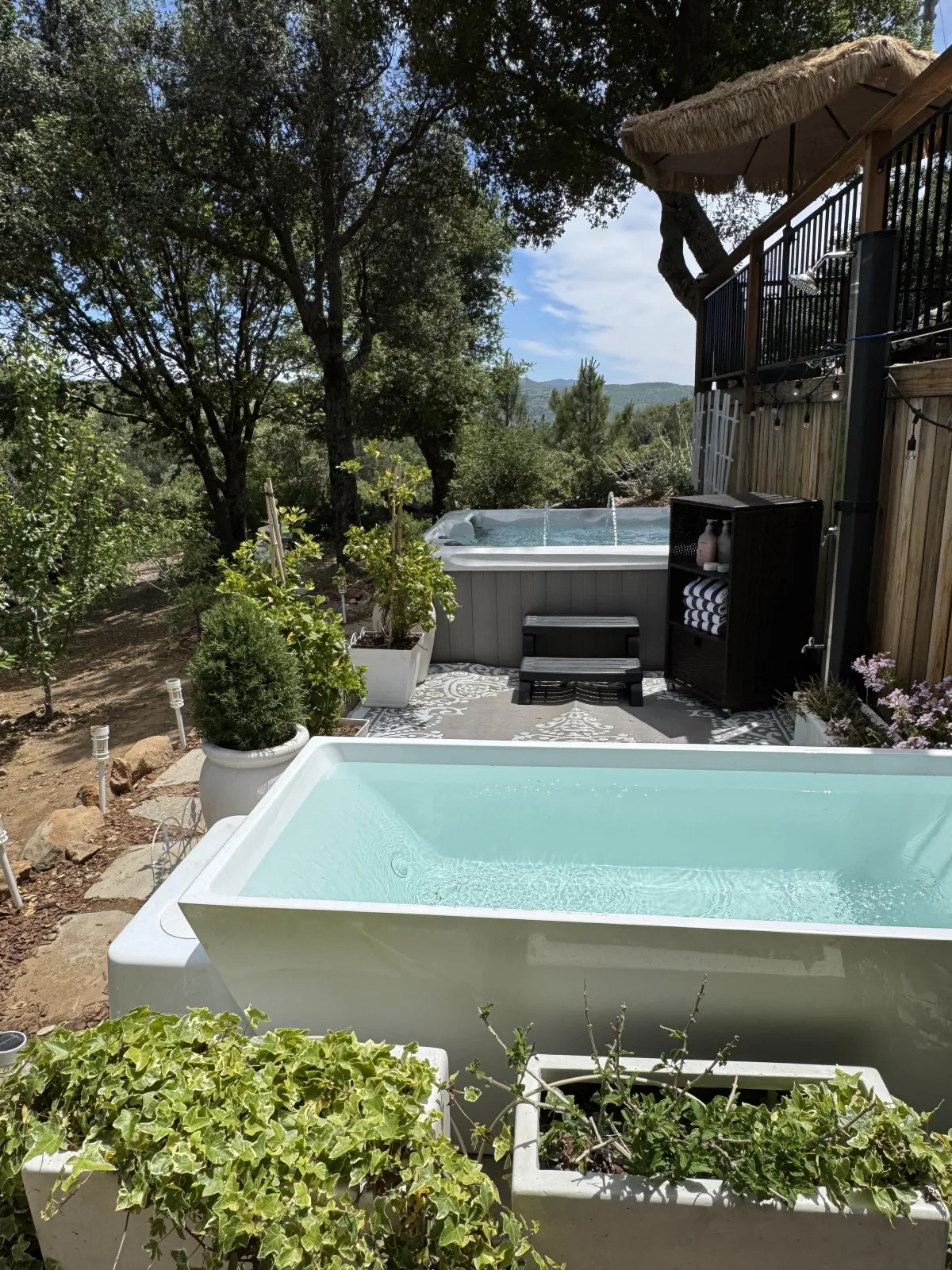 Learn MoreFar-Infrared Sauna, Cold Plunge, Spa, Outdoor Shower. Can be booked individually or grouped. All options have access to the outdoor solar shower.