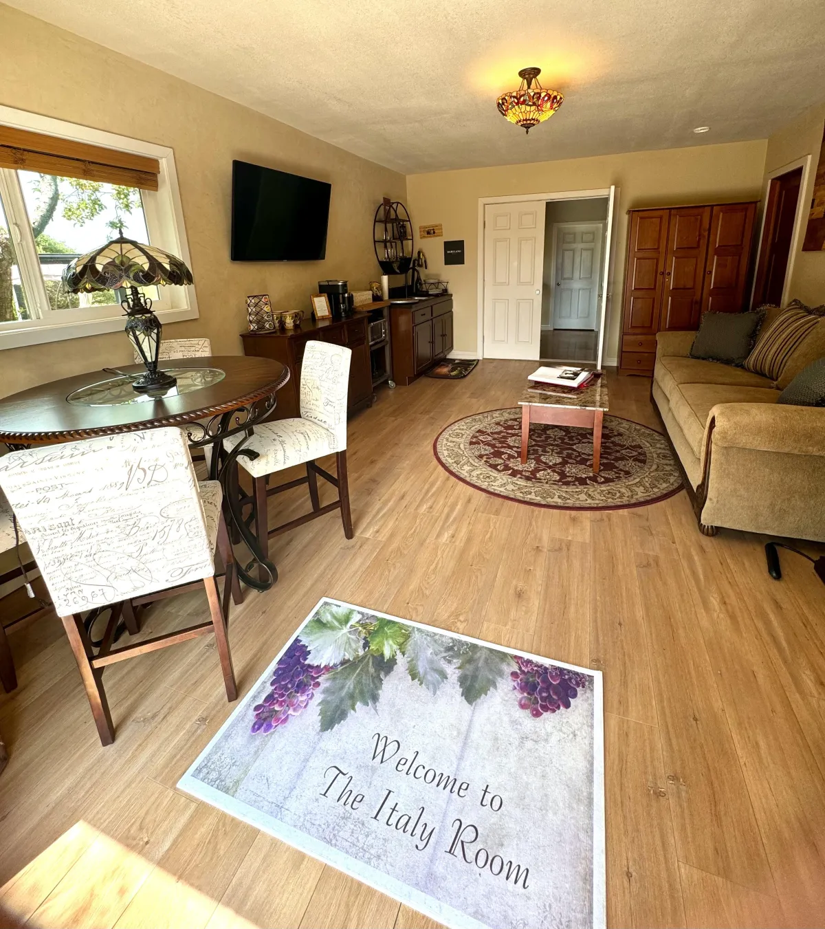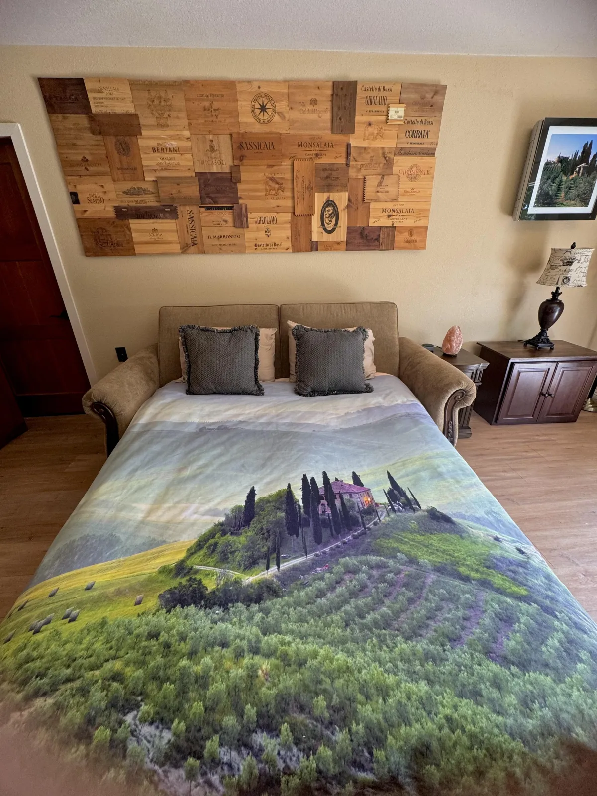 When two friends attend the retreat together, the Italy Room is used as a second bedroom. Inspired by old-world Tuscany and overlooking the vineyard, this space is warm, inviting, and transportive — designed to make you feel as though you’ve stepped into another world entirely.